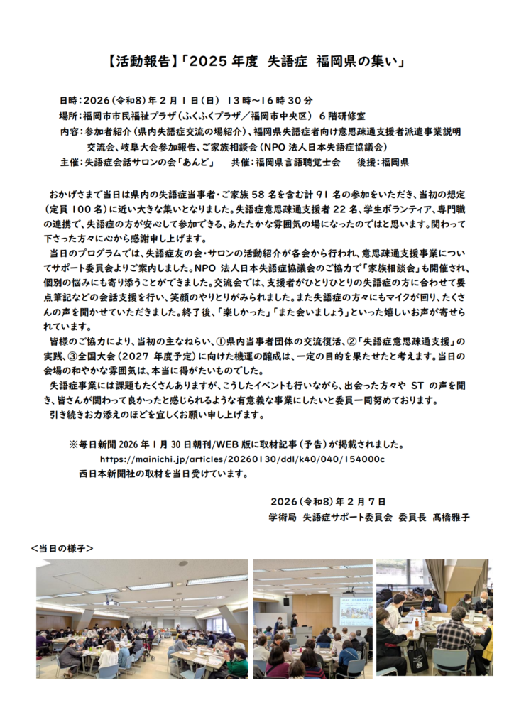 失語症 福岡県の集い 活動報告